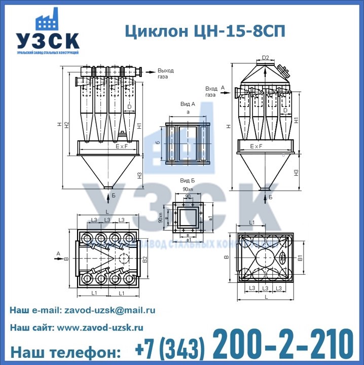 Завод «УЗСК» в Усть-каменогорске предлагает большой выбор циклонов ЦН-15-500×8СП и прочих устройств, полностью укомплектованных и готовых к эксплуатации. Мы гарантируем соответствие оборудования всем требованиям ГОСТ и ТУ, износостойкость и высокую производительность предлагаемого оборудования. Уральский Завод Стальных Конструкций изготавливает и продает надежное, эффективное и производительное оборудование, имеющее длительную гарантию и большой эксплуатационный ресурс. Если требуется изготовить циклон нестандартных размеров, то такой вариант выполнения заказа тоже предусмотрен, так как предприятие имеет собственные производственные площади и надежных поставщиков. На все поставляемое или производимое оборудование имеются чертежи и прочая техническая документация. Заказать и купить циклоны или прочее оборудование высокого качества и по доступной цене можно через наш сайт или по указанному в разделе