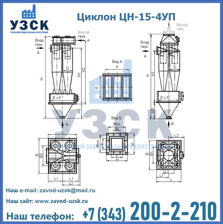 Завод «УЗСК» в Усть-каменогорске предлагает большой выбор циклонов ЦН-15-700×4УП и прочих устройств, полностью укомплектованных и готовых к эксплуатации. Мы гарантируем соответствие оборудования всем требованиям ГОСТ и ТУ, износостойкость и высокую производительность предлагаемого оборудования. Уральский Завод Стальных Конструкций изготавливает и продает надежное, эффективное и производительное оборудование, имеющее длительную гарантию и большой эксплуатационный ресурс. Если требуется изготовить циклон нестандартных размеров, то такой вариант выполнения заказа тоже предусмотрен, так как предприятие имеет собственные производственные площади и надежных поставщиков. На все поставляемое или производимое оборудование имеются чертежи и прочая техническая документация. Заказать и купить циклоны или прочее оборудование высокого качества и по доступной цене можно через наш сайт или по указанному в разделе «Контакты» телефону.