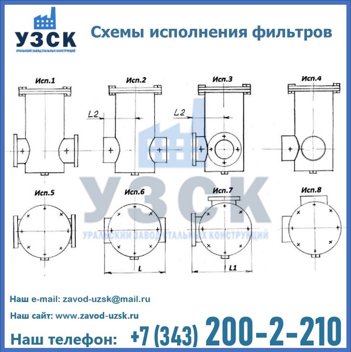 Из-за этого и разнится обозначение на ФГ и ФГУ, соответственно. Фильтры также могут быть вертикальными и горизонтальными, также может быть предусмотрена врезка сбросного трубопровода. Какой бы тип фильтра ни понадобился, завод «УЗСК» в Усть-каменогорске занимается производством любого из них.