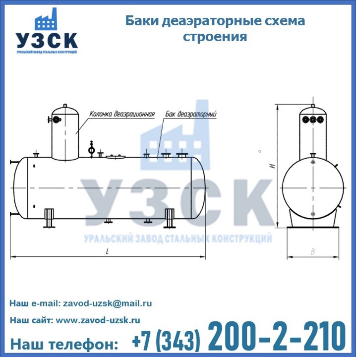 Уральский Завод Стальных Конструкций предлагает качественное емкостное оборудование, в том числе баки деаэраторные, по приемлемой цене. Реализуемые нашей компанией изделия изготавливаются из прочной углеродистой стали, листы для баков имеют толщину от 8 мм. Мы производим и продаем деаэраторные баки БДА, которые полностью соответствуют ГОСТ Р 16860-88 и 52630-2012.